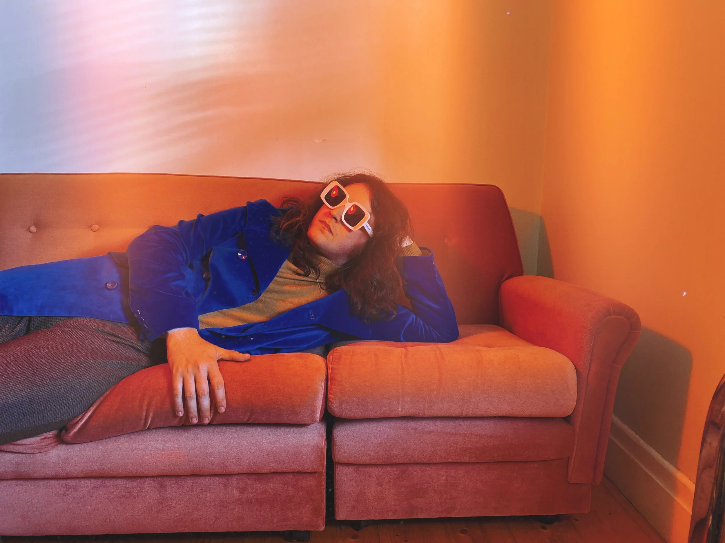 A couch? Sounds basic. But with the right styling, angles, and light, a couch is anything but boring. Play with poses — laying upside down, draped over the armrest, sprawled out with moody lighting.